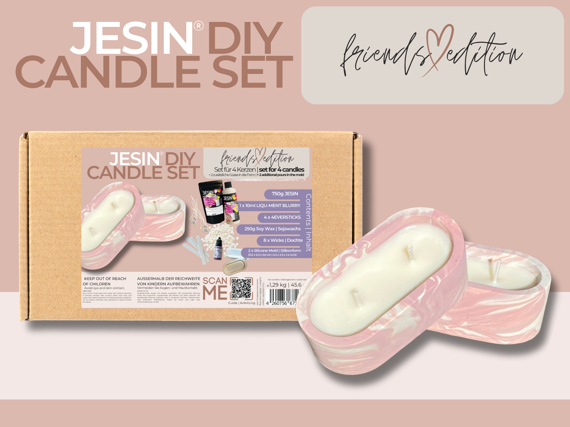 💡 Pro Tip: To calculate how much JESIN you need, fill your mold with water and weigh it. Example: 150g water = 300g JESIN (100g liquid + 200g powder).