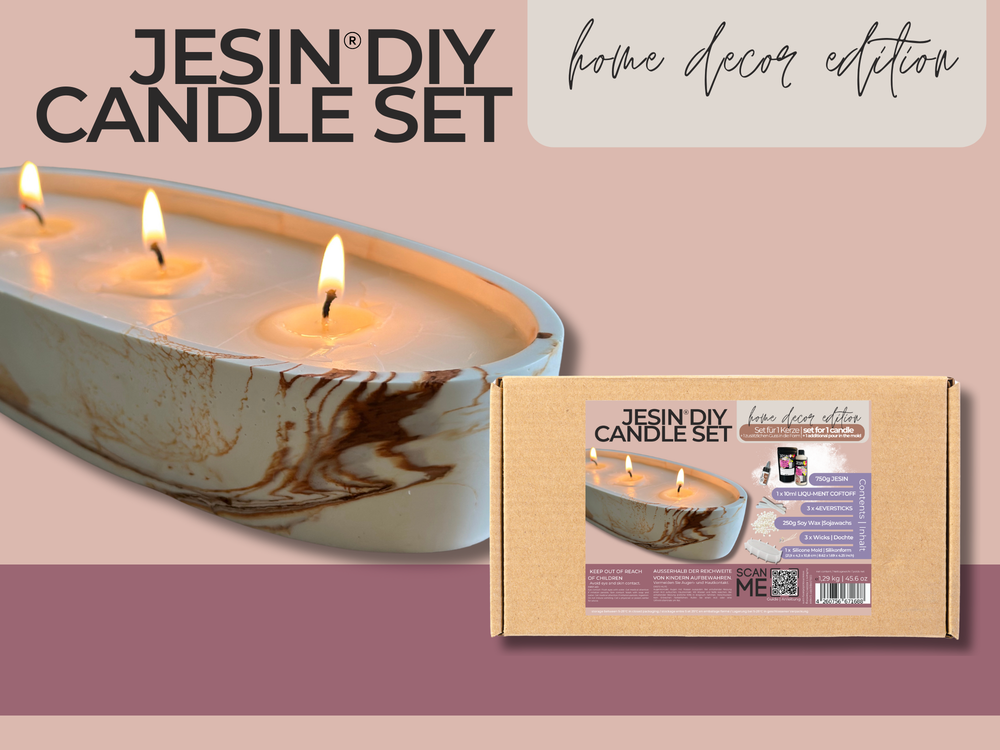 One 3kg kit makes up to 30 coasters / 10 trays / 15 small candle vessels